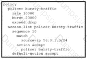 Refer to the exhibit. The ge0/0 interface connects to a 30-MB link. A network administrator wants to always have 10 MB available for high priority traffic. When lower-priority traffic busts exceed 20 MB. Traffic should be redirected to the second WAN interface ge0/1. Which set of configurations accomplishes this task?