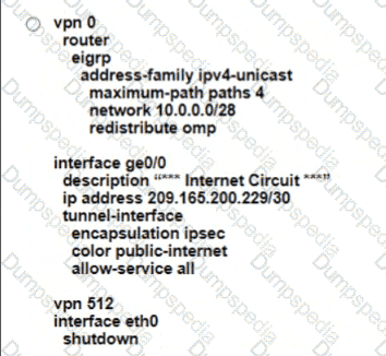 Refer to the exhibit The network team must configure ElGRP peering at HQ with devices in the service VPN connected to WAN Edge CSRv. CSRv is currently configured with