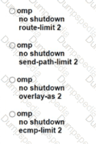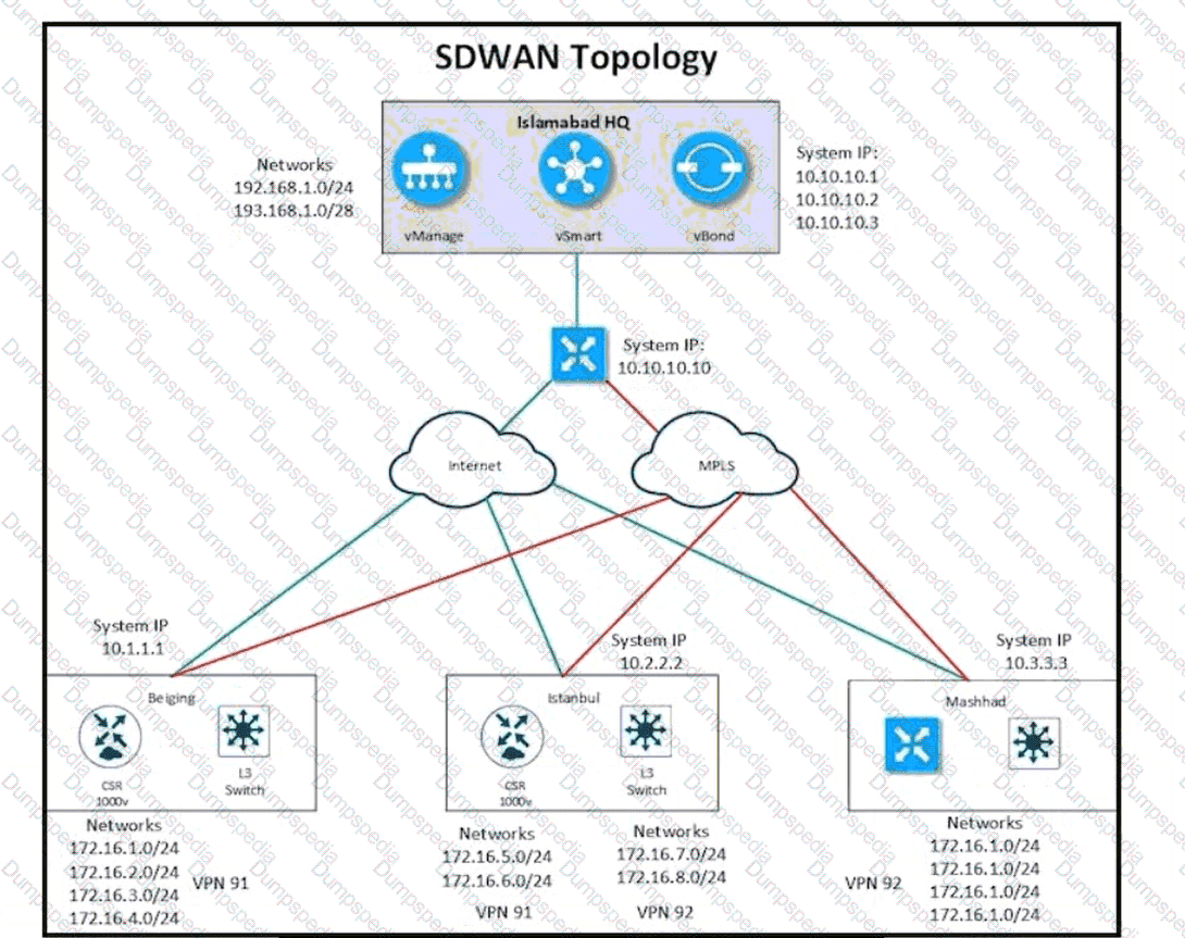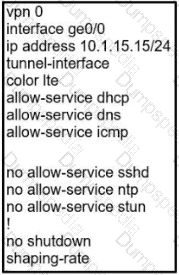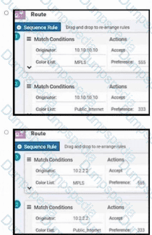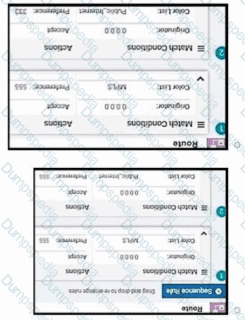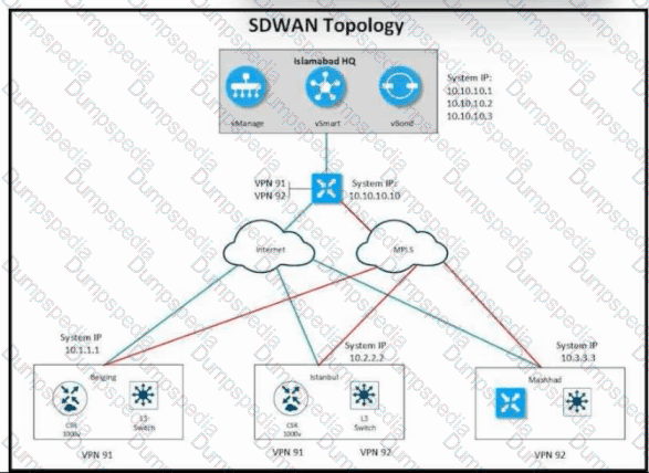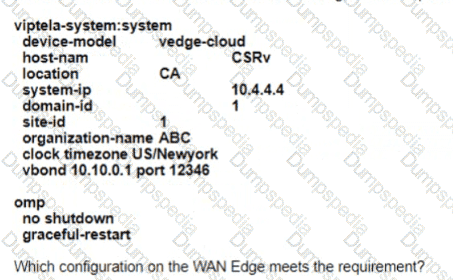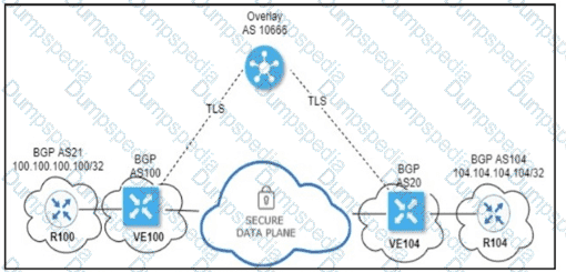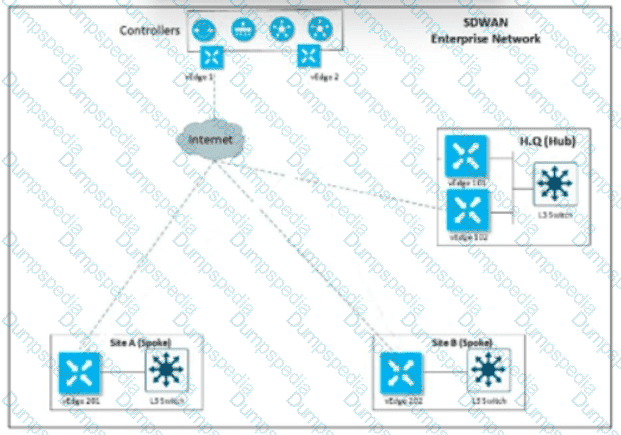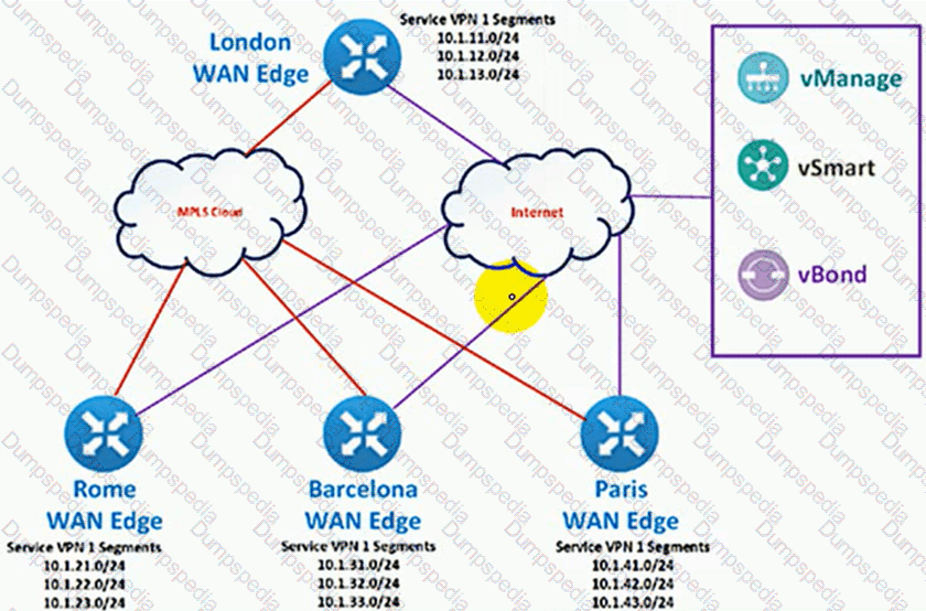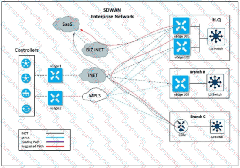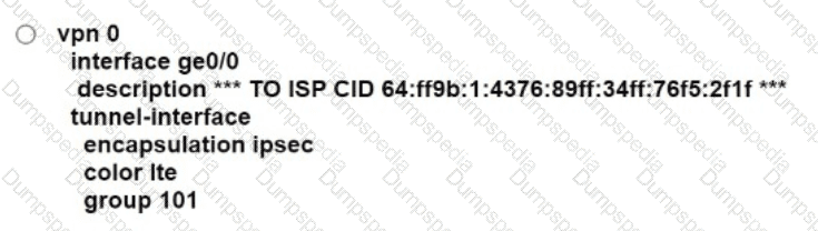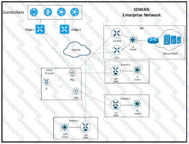 The network team must configure branch B WAN Edge device 103 to establish dynamic full-mesh IPsec tunnels between all colors with branches over MPLS and Internet circuits. The branch ts configured with: