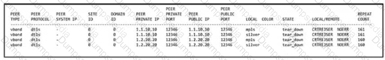 An engineer is troubleshooting a vEdge router and identifies a “DCONFAIL – DTLS connection failure” message. What is the problem?