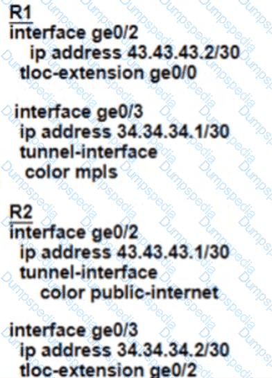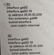 Customer XYZ cannot provison dual connectivity on both Its routers due to budget constratnts but wants to use tnth RI and R2 interface for users behind them for load toward the hub site Which configurauon achieves this objectives?