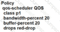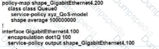 Refer to the exhibit An engineer is configuring a QoS policy to shape traffic for VLAN 100 on a subinterface Which policy configuration accomplishes the task?