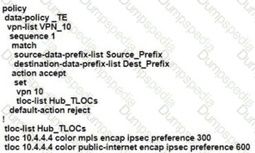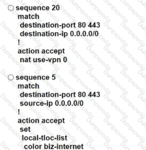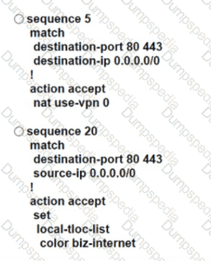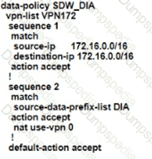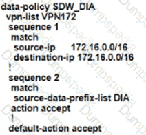 An engineer modifies a data policy for DIA in VPN 67. The location has two Internet-bound circuits. Only the web browsing traffic must be admitted for DIA. without further discrimination about which transport to use.
