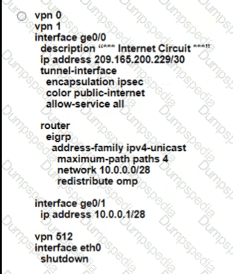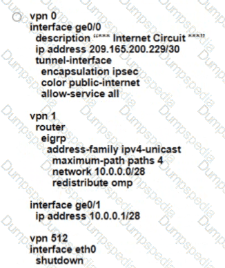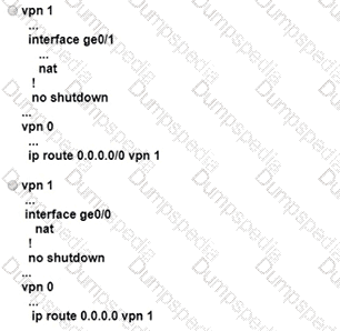 Refer to the exhibit Which configuration sets up direct Internet access for VPN 1?