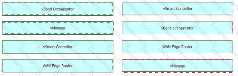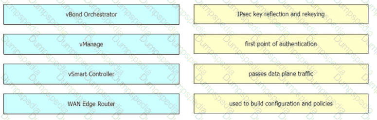 Drag and drop the Cisco SD-WAN components from the left onto their functions on the right.