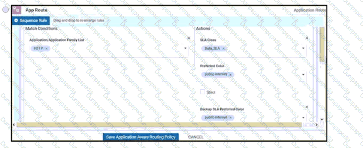 An engineer must improve video quality by limiting HTTP traffic to the Internet without any failover. Which configuration in vManage achieves this goal?