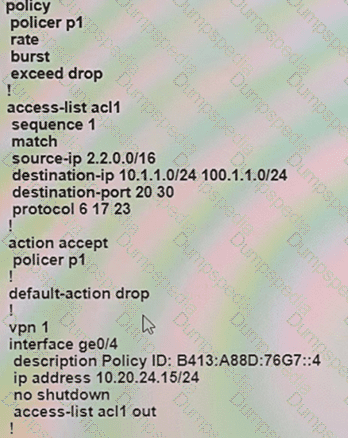 Refer to the exhibit. An engineer must block FTP traffic coming in from a particular Service VPN on a WAN Edge device Which set of steps achieves this goal?