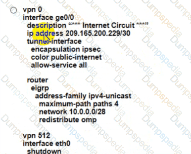 The network design team has advised to use private IP addresses and private colors over the SP circuit for the data plane connections. The Public IP should be used for control connections. Which configuration should be applied at SiteA to achieve this task?