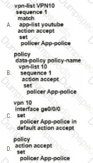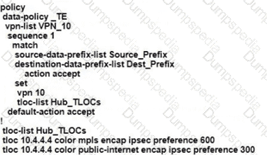 The Cisco SD-WAN network is configured with a default full-mesh topology. An engineer wants Paris WAN Edge to use the Internet HOC as the preferred TLOC for MSN Messenger and AOL Messenger traffic. Which policy achieves this goal?
