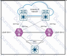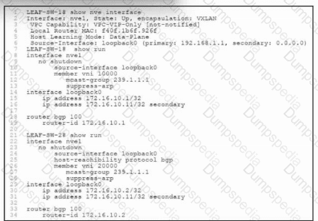 Refer to the exhibit. An engineer is troubleshooting an issue where switch LEAF-SW-1 and switch LEAF-SW-2 receive corrupted forwarding and learning information about each other. LEAF-SW-1 and LEAF-SW-2 are configured with BGP EVPN VTEP. Which action resolves the issue?