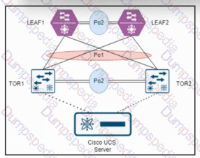 Refer to the exhibit. An engineer must connect switch TOR1 and switch TOR2 to switch LEAF1 and switch LEAF2 by using double-sided vPCs. LEAF1 and LEAF2 are already configured as vPC peers. Which action must be taken next to complete the configuration?