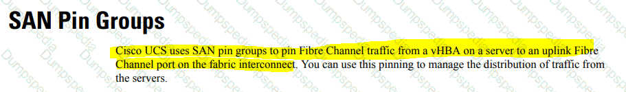 A network architect proposes a distinct Fibre Channel fabric to be used for a Cisco UCS blade server that hosts critical applications. Which action should be implemented for the fibre Channel traffic from the vHBA of this service to pass through the I/O module in the Cisco chassis to a specified uplink Fibre Channel port?