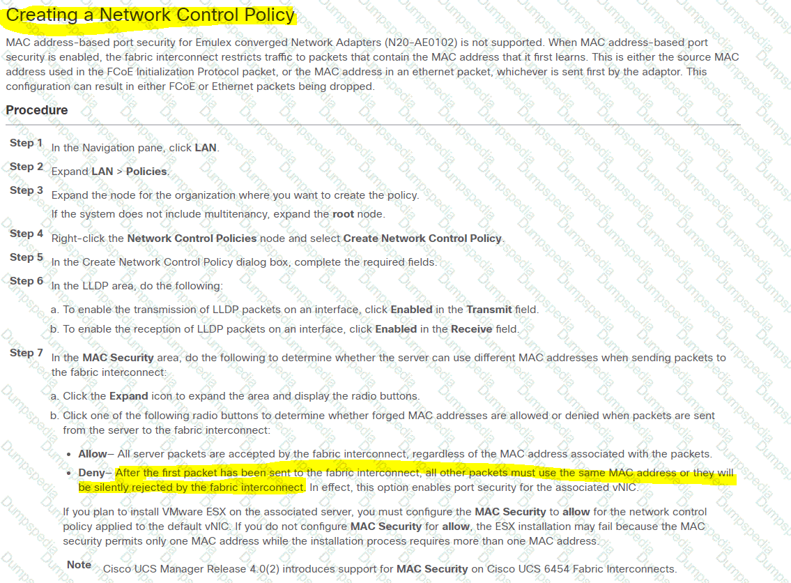 A company has several data centers with hundreds of Cisco UCS blade chassis. A network consultant plans to active Cisco Discovery Protocol to the servers to facilitate Layer 1 troubleshooting. For security reasons, the company wants to restrict the servers from sending different MAC addresses to the fabric interconnect after the MAC address from the first packet is learned. Which two policies be modified to support this design? (Choose two.)