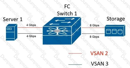 Server 1 fails to connect to the storage array over the Storage Area Network (SAN) of the Cisco NDS 9000 Series Switch. The requirements are to redesign the storage network and keep these considerations in mind: