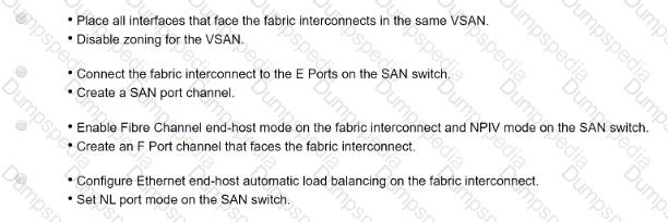 A network consultant evaluates the Cisco UCS Fabric Interconnect SAN configuration, which must meet these requirements: