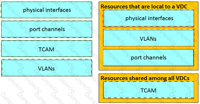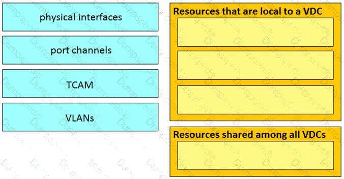 Drag and drop the Cisco Nexus 7000 Series Switch resources from the left onto the correct groups on the right.