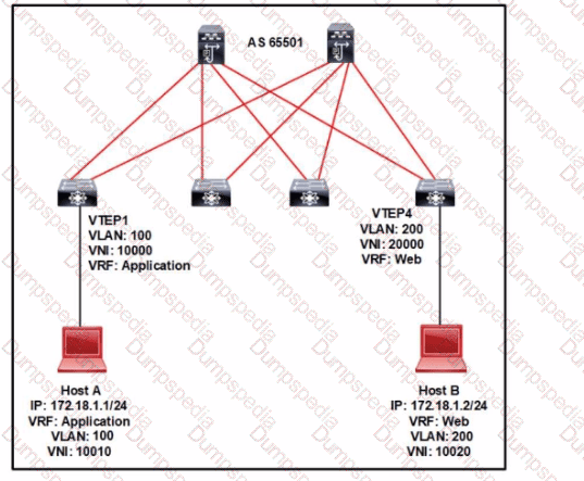 Refer to the exhibit. An engineer deployed a VXLAN fabric with this configuration: