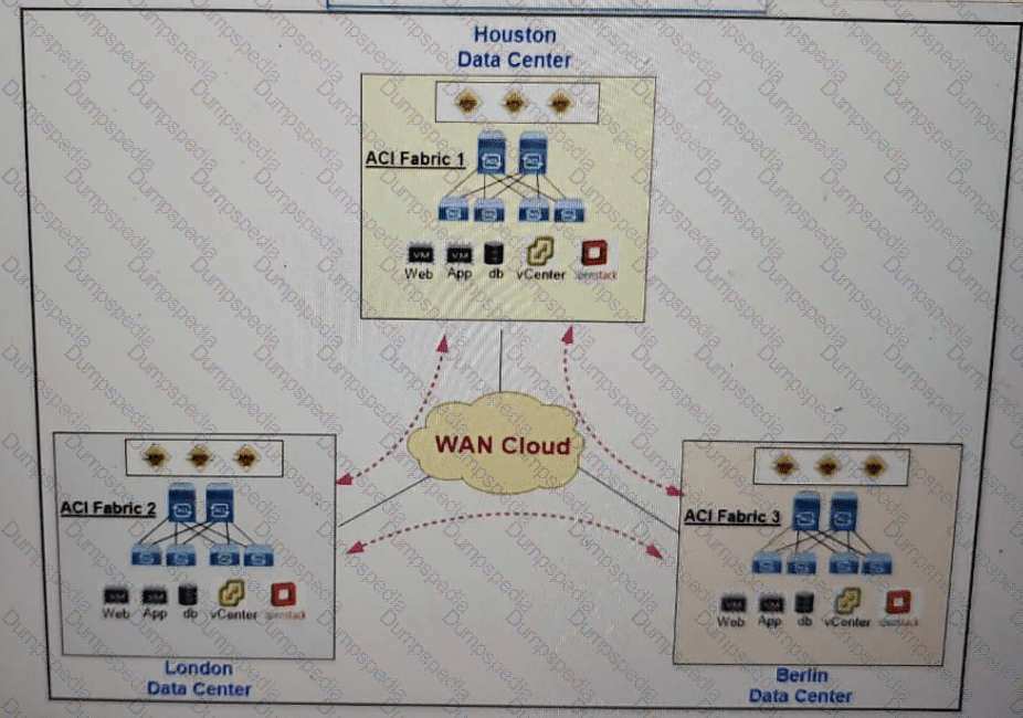 A cloud provider service provider deployed three geographically separated Cisco ACI data centers. One of the customers needs to host a clustered application that is spread across the three data centers. The cluster nodes that host the application need a layer 2 topology to communicate with each other. Which Cisco ACI topology design meets these requirements?