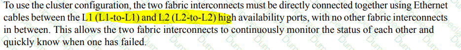 A network architect designs a high-availability architecture for the Cisco UCS Fabric interconnects that installed in a data center. The architecture must support clustering and redundancy. Which architecture meets these requirements?