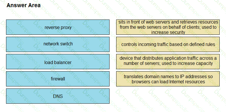 Drag and drop the elements from the left onto the correct descriptions on the right. Not all options are used.