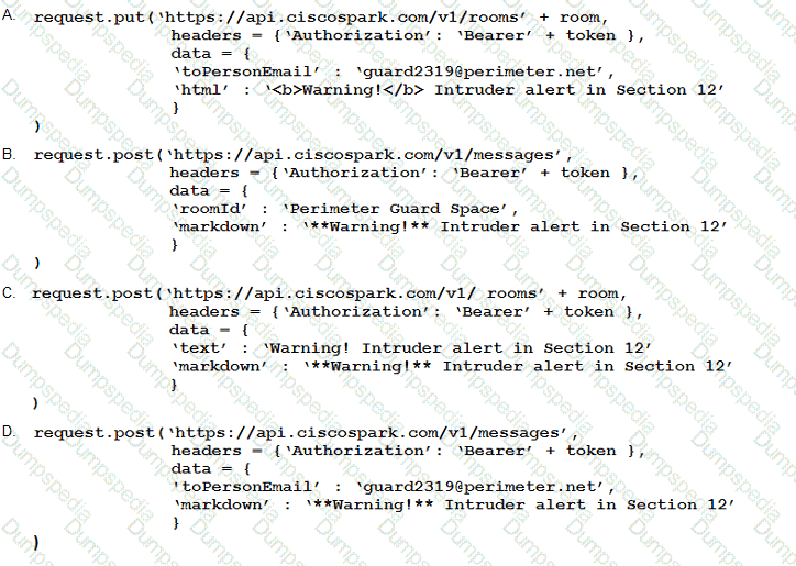 The code includes the beginning of a short Python script that is constructed to notify the guard in case of an intruder alert. Which code snippet completes the script?