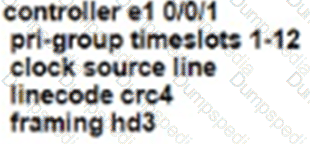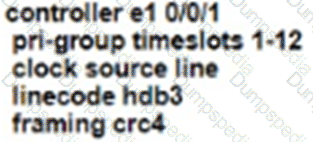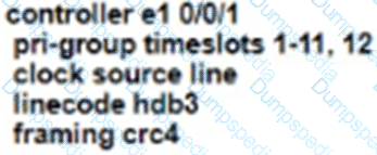 Refer to the exhibit. An administrator must replace the T1 card with an E1 card. What is the correct configuration if the administrator was asked to configure 12 time slots?