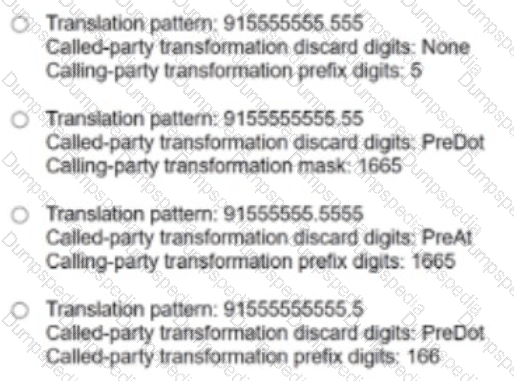 An engineer must configure a new Cisco UCM translation pattern to convert 915555555555 into 1665 Which translation pattern must be used?