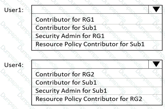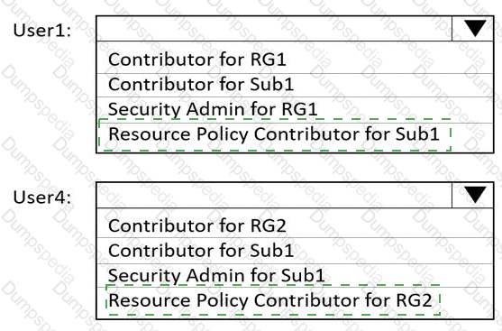 Which role should you assign to each user? To answer, select the appropriate options in the answer area.
