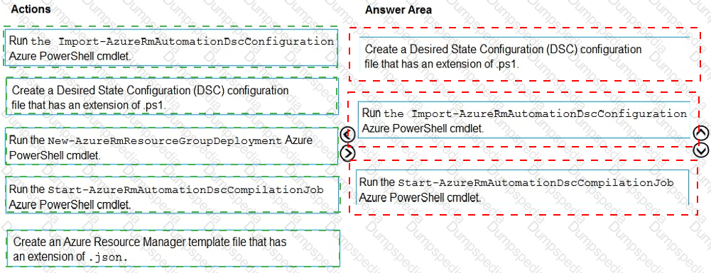 Which three actions should you recommend be performed in sequence? To answer, move the appropriate actions from the list of actions to the answer area and arrange them in the correct order.