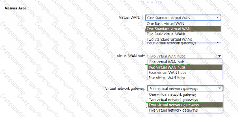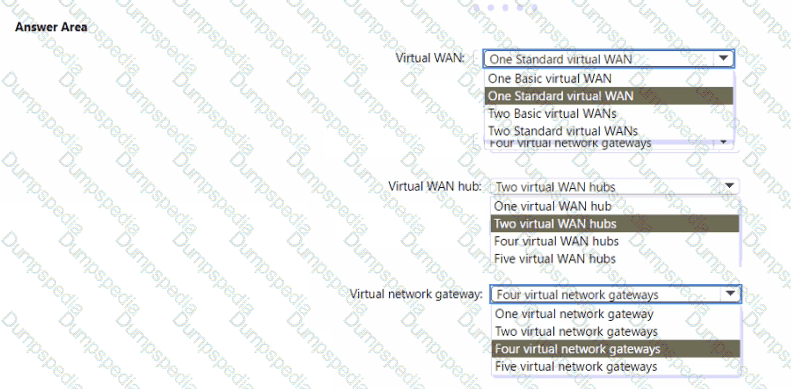 What is the minimum number of Virtual WAN resources required? To answer, select the appropriate options in the answer area. NOTE: Each correct selection is worth one point.