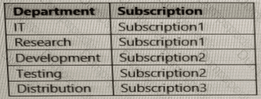 The departments at the company use the Azure subscriptions as shown in the following table.