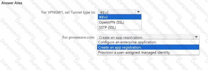 You need to configure connectivity between NYCNet and SFONet. The solution must meet the connectivity requirements. What should you do? To answer, select the appropriate options in the answer area. NOTE: Each correct selection is worth one point.