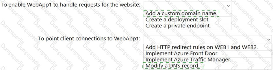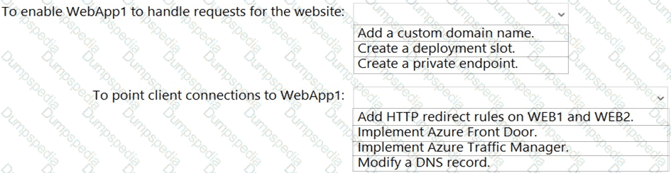 How should you configure WebApp1? To answer, select the appropriate options in the answer area.