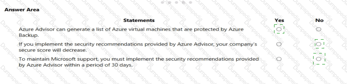 For each of the following statements, select Yes if the statement is true. Otherwise, select No. NOTE: Each correct selection is worth one point.