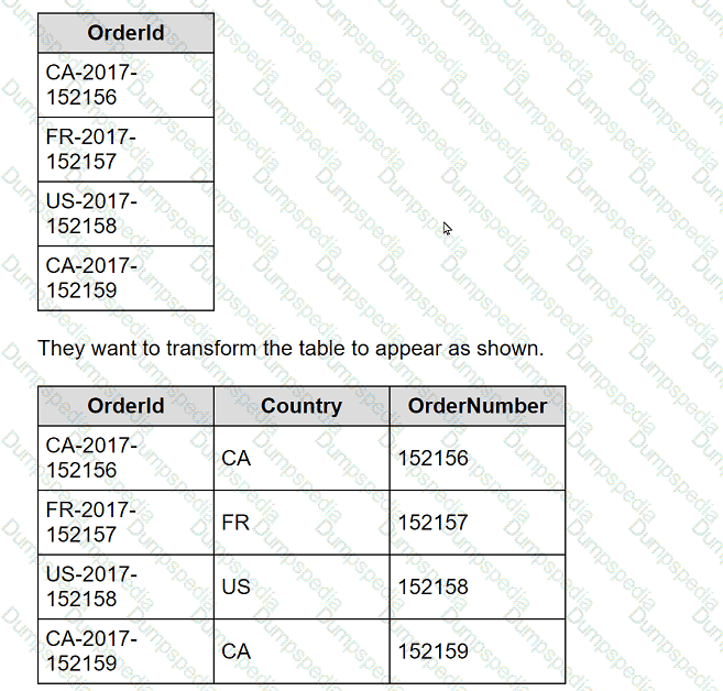 A client is working in Tableau Prep and has a field named Orderld that is compiled by country, year, and an order number as shown in the following table.