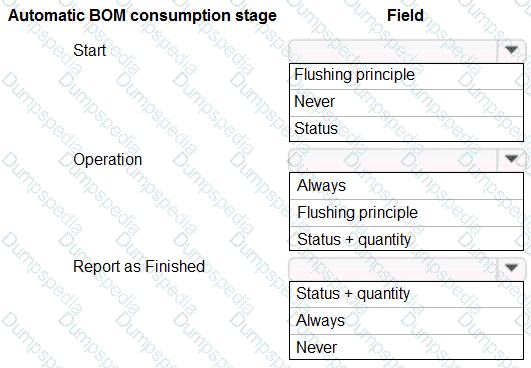 How should you configure manufacturing execution? To answer, select the appropriate option in the answer area.