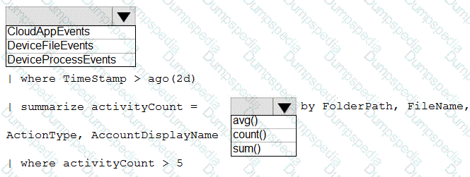 How should you complete the query? To answer, select the appropriate options in the answer area.