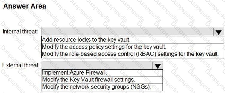 What should you recommend for each threat? To answer, select the appropriate options in the answer area.