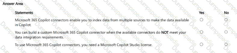 - For each of the following statements, select Yes if the statement is true. Otherwise, select No. NOTE: Each correct selection is worth one point.