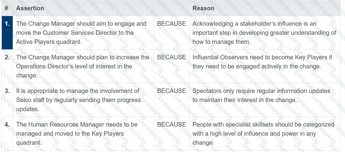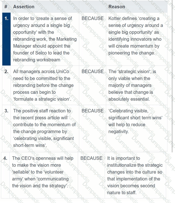 To ensure that the UniCo change programme is successful, the Chief Executive Officer (CEO) knows that correctly assigning the key change roles will be essential.