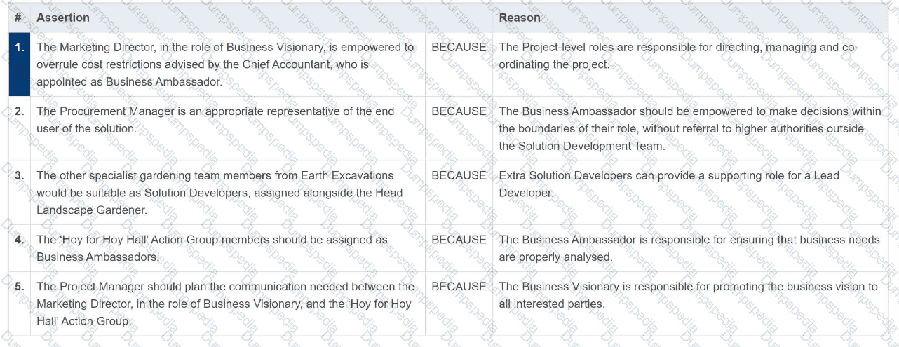 Which 2 statements represent appropriate entries for the Business Case?