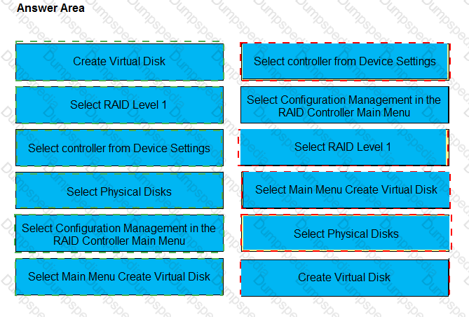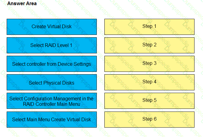 An administrator needs to configure RAID 1 in System Setup. Place the sequence in the correct order.