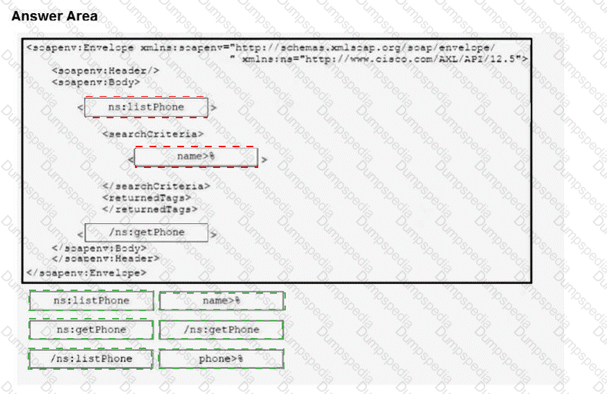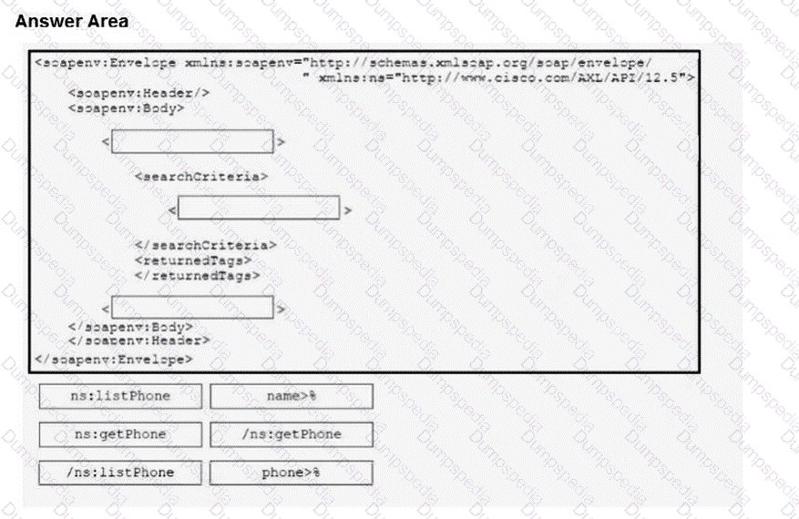 Drag and drop the code snippets from the bottom onto the blanks in the code to automate a query to list all phones on a test Cisco UCM cluster using