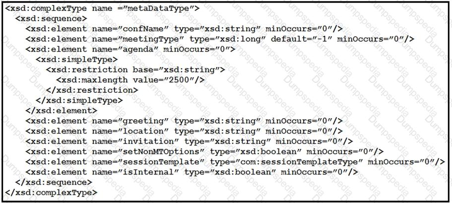 Based on this Webex Meetings XML API schema snippet, which XML object is a valid