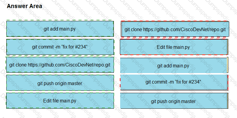 Drag and drop the git commands/steps from the left into the correct order on the right to make changes and submit code to a remote repository.