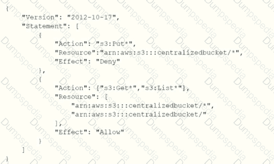 The Security Engineer is unable to access the log files in the centralized S3 bucket. The Engineer's IAM user policy from the centralized account looks like this: