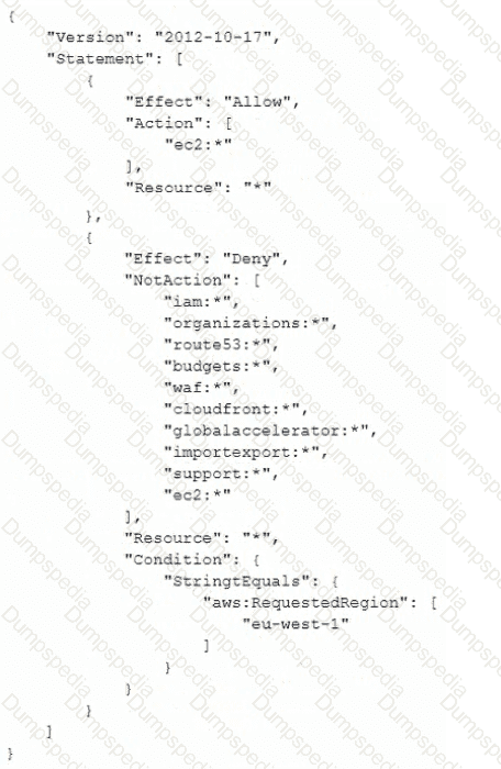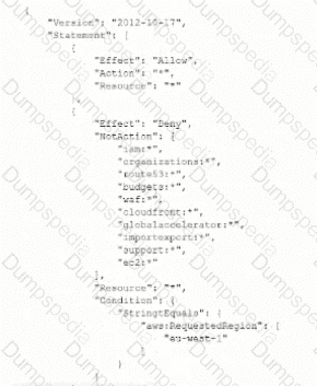 A company has an organization with SCPs in AWS Organizations. The root SCP for the organization is as follows: