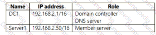 Your network contains an on-premises Active Directory Domain Services (AD DS) domain named contoso.com. The domain contains the servers shown in the following table.