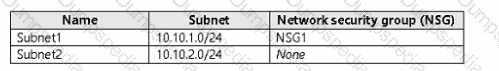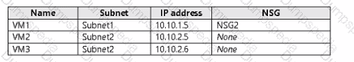 You have Azure virtual machines that have the network configurations shown in the following table.