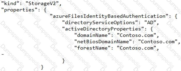 You have an Azure subscription that contains a storage account named storage1. The subscription is linked to an Azure Active Directory (Azure AD) tenant named contoso.com that syncs to an on-premises Active Directory domain.